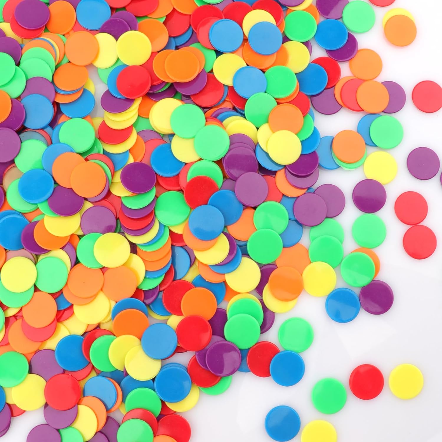 - Texture and size: these small bingo chips made of plastic with smooth surface; These counters are about 3/4” in diameter and the thickness are about 2/50” for easy pick up.