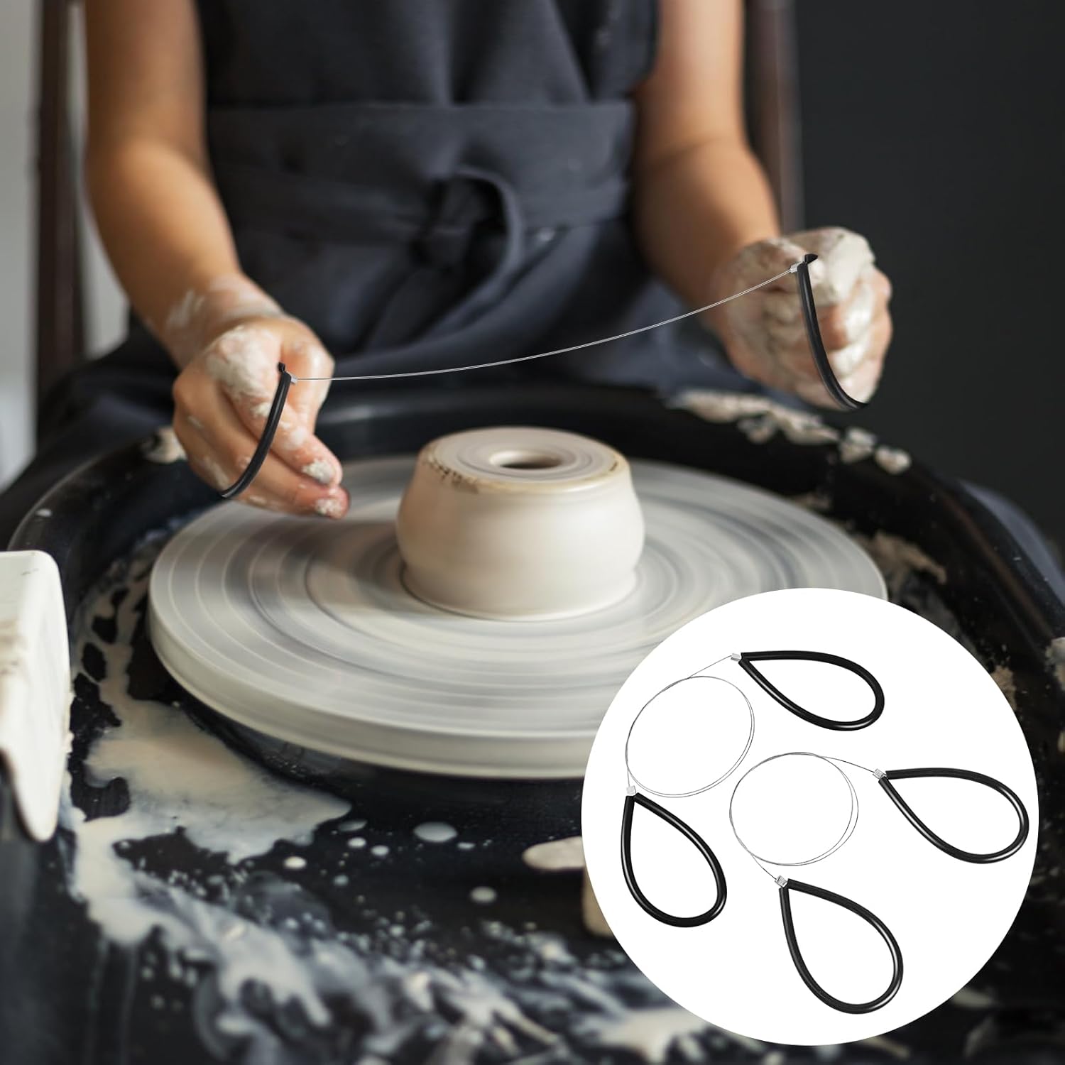 Clay Cutters Wire Steel Wire Clay Cutter Cutting Pottery Tools Cut Off Tools for Clay Artists with Black Handle Pottery Wheel Wire Tools 2 Pcs
