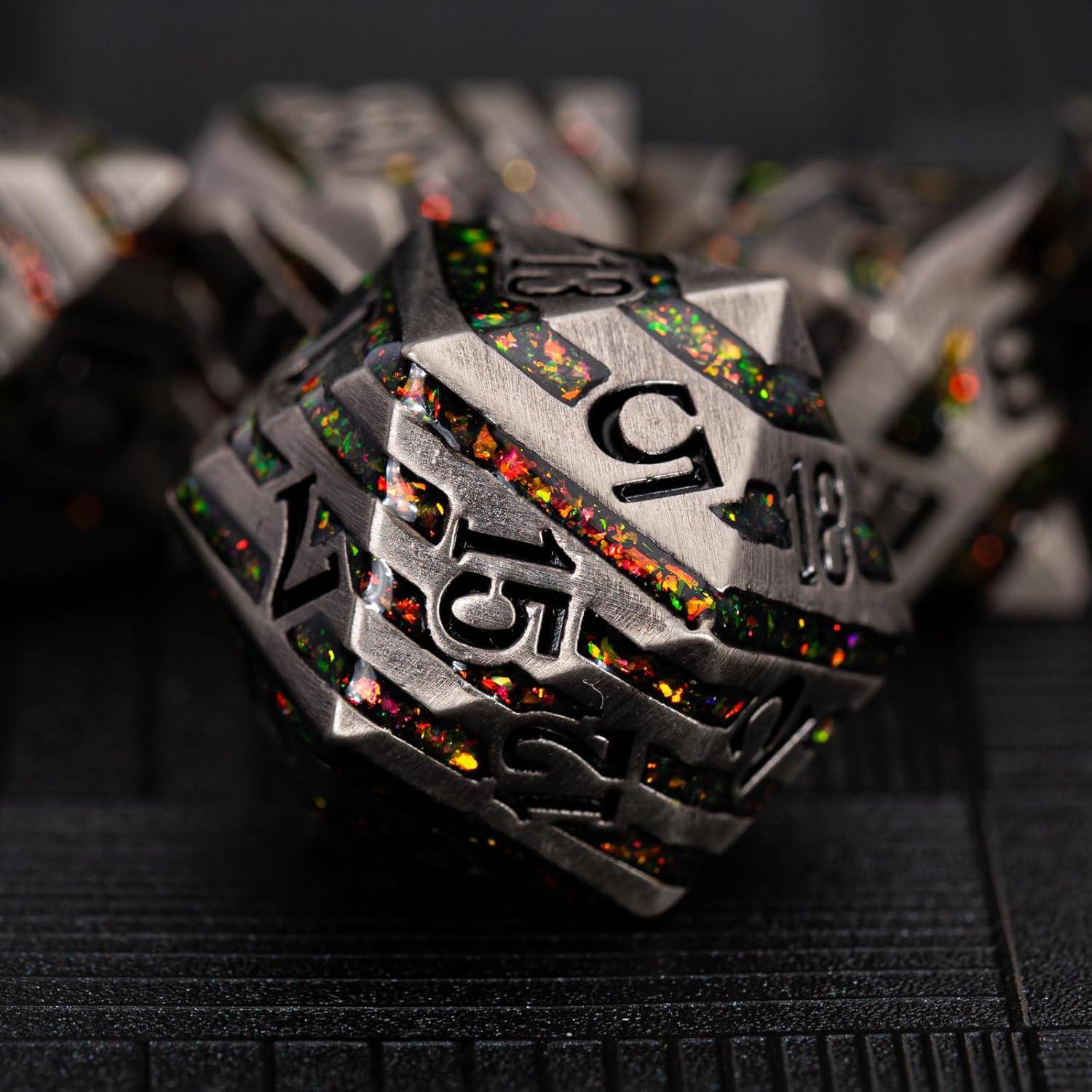 - Excellent Craftsmanship - metal dice Stripes design, the dice is having the cool engraving. All of these elements are carved on the metal dnd dice set with exquisite craftsmanship.
