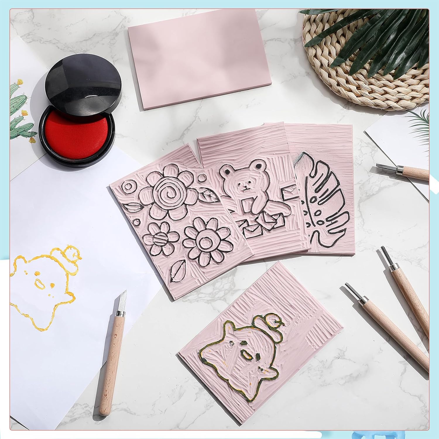 - Versatile Applications: pink rubber carving blocks are ideal for various printmaking techniques, including linocutting, stamp carving, block printing, and more; They are suitable for creating your own stamps, artwork, patterns, and designs