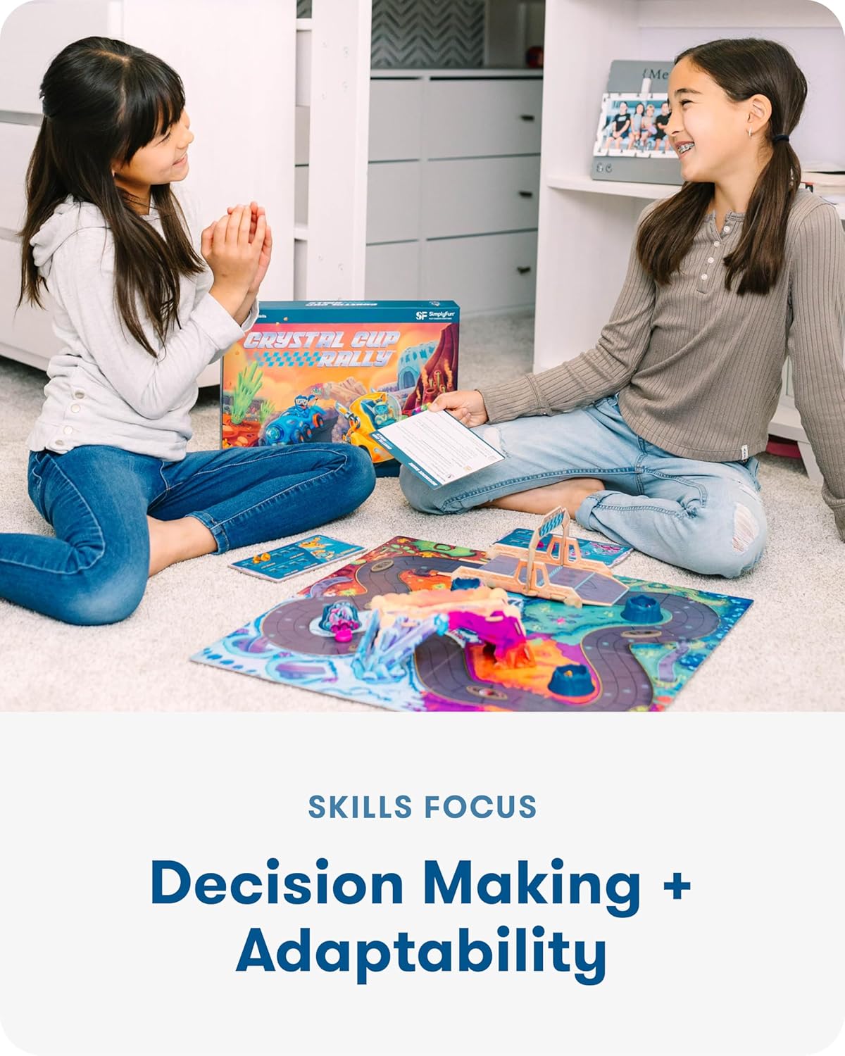 - HOW TO PLAY: Players take turns rolling the dice and racing their vehicle around the track. Racers collect crystals to power up their vehicle and plan which paths to take to get ahead. Power-ups can be used to take shortcuts, drive over obstacles, or increase their engine power. Racers can also place obstacles in the way of their opponents to slow them down. Be the first racer to complete two laps around the track and win the Crystal Cup Trophy.