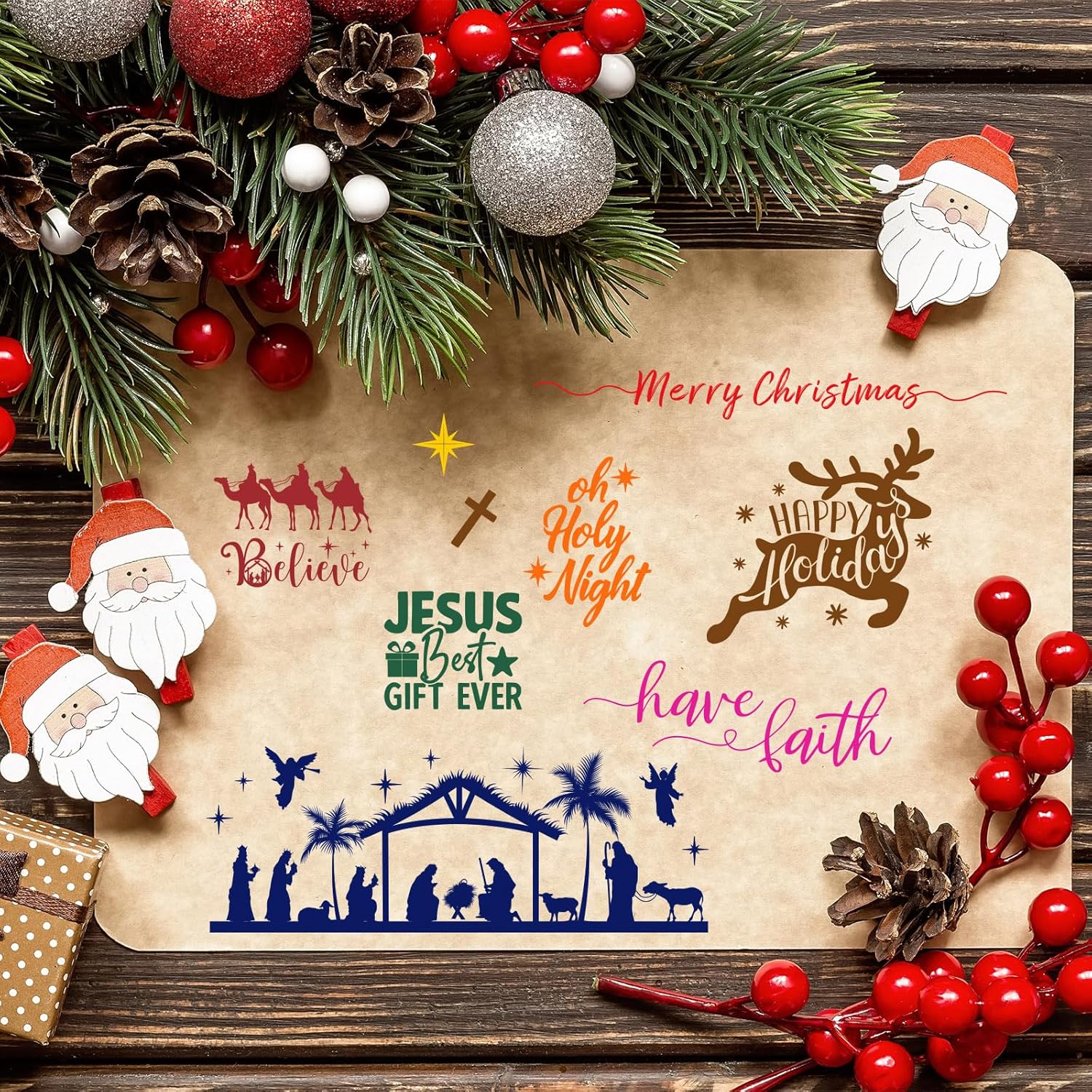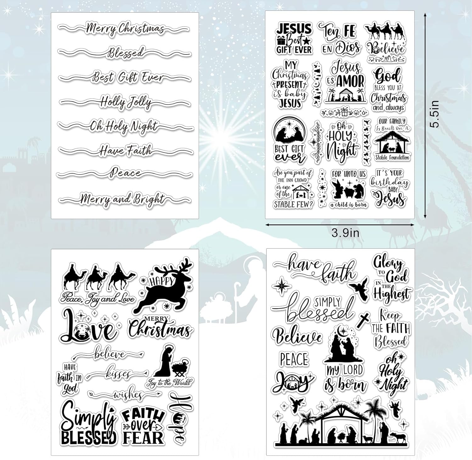 - Christmas Theme: These clear stamps are printed with Christmas themed greeting words and patterned with nativity scene, delicate and eye-catching, full of festive feelings, suitable for Christmas decoration