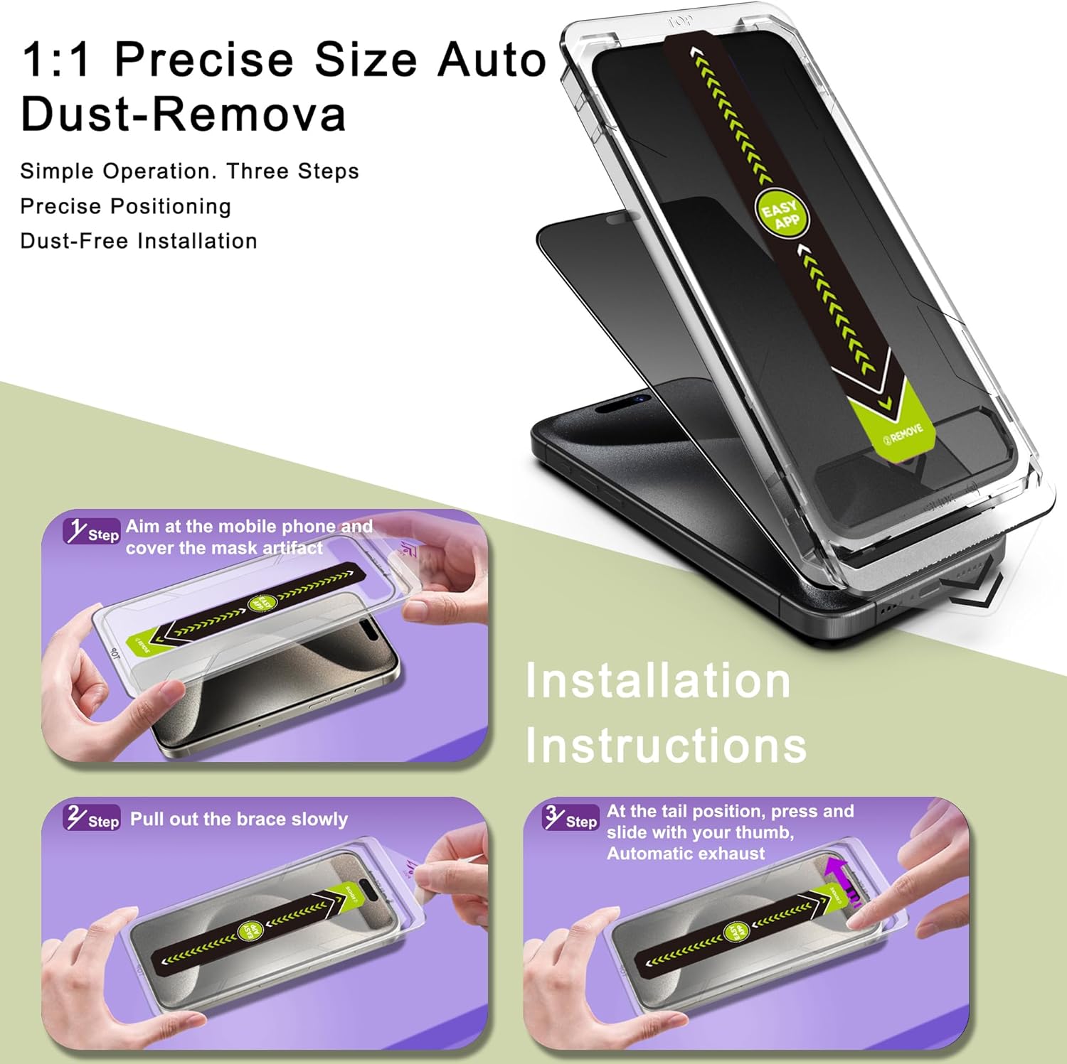 - Auto Dust Removal & Easy Installation: The SY SHANGYAN Matte Privacy Anti-Spy Screen Protector for iPhone 16 Pro Max features advanced auto dust removal and self-aligning technology for a flawless,bubble-free install every time.Just place the frame,pull the tab,and press to push out any air bubbles.Installation is quick,easy,and hassle-free.For best results,watch our step-by-step installation video before applying