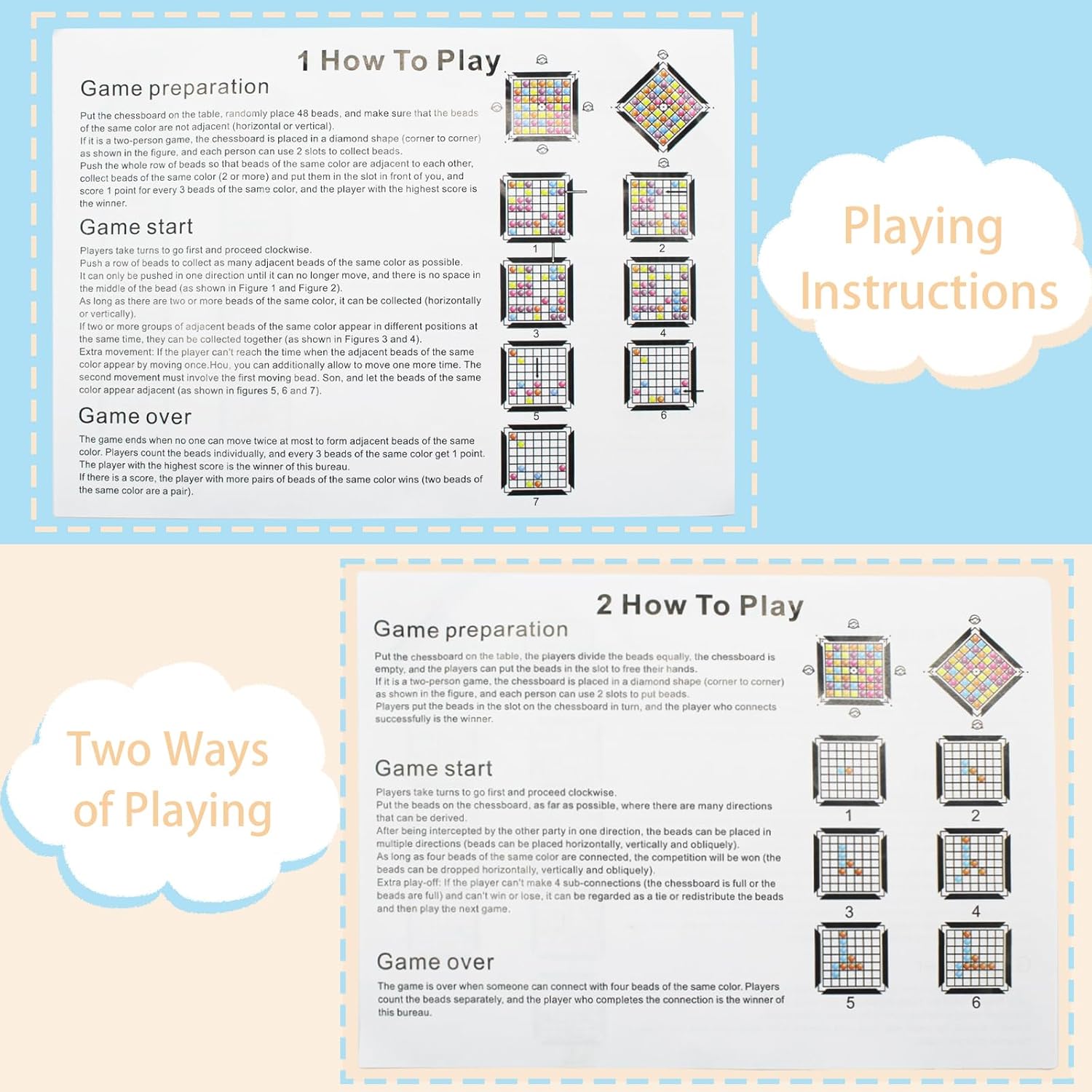 - 【Fun Desktop Board Games】The colorful packaging box contains a game board and 168 colorful balls, and provides a chess piece storage bag.Also it contain directions make it easy to understand the game rules. It is light and not easy to damage, easy to carry and store. Whether at home, outdoors or traveling, you can enjoy the fun of the strategy board games chess board anytime, anywhere.