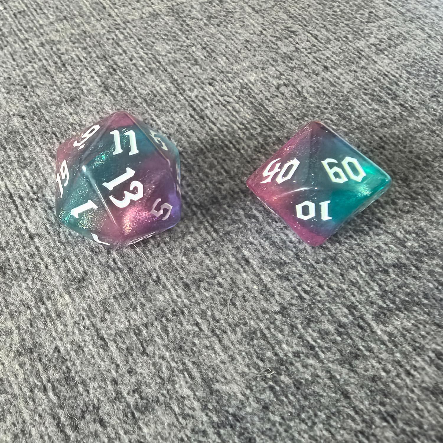 DND RPG Dice Set, Nebula Polyhedral Dice for Dungeons and Dragons, Mystery 7-Piece Set (Green Purple)