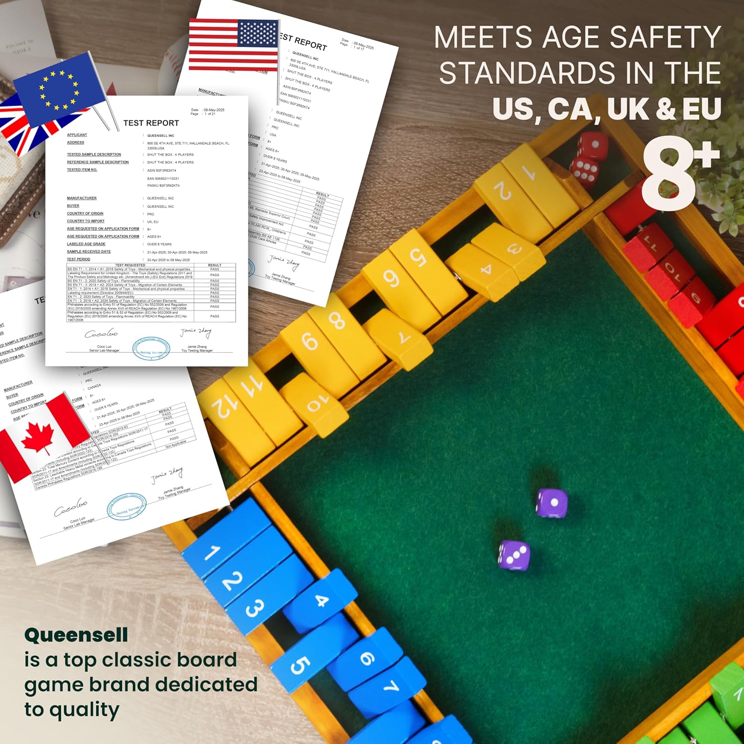- What’s in the Box? – Includes a 4-player Shut the Box board with 12 numbered tiles, 10 colorful 0.6-inch dice, a 5.1 x 3.7-inch fabric bag, and a bright, easy-to-follow instruction manual
