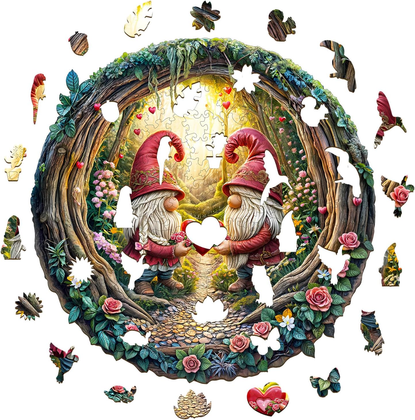 KAAYEE Wooden Puzzles for Adults, 3D Visual Effect Gnome Couple Wooden Jigsaw Puzzle Unique Shape Wood Puzzle Adult, 3D Effect Flat Puzzle Birthday Family Games (S-8.5 * 8.4in-100pcs)