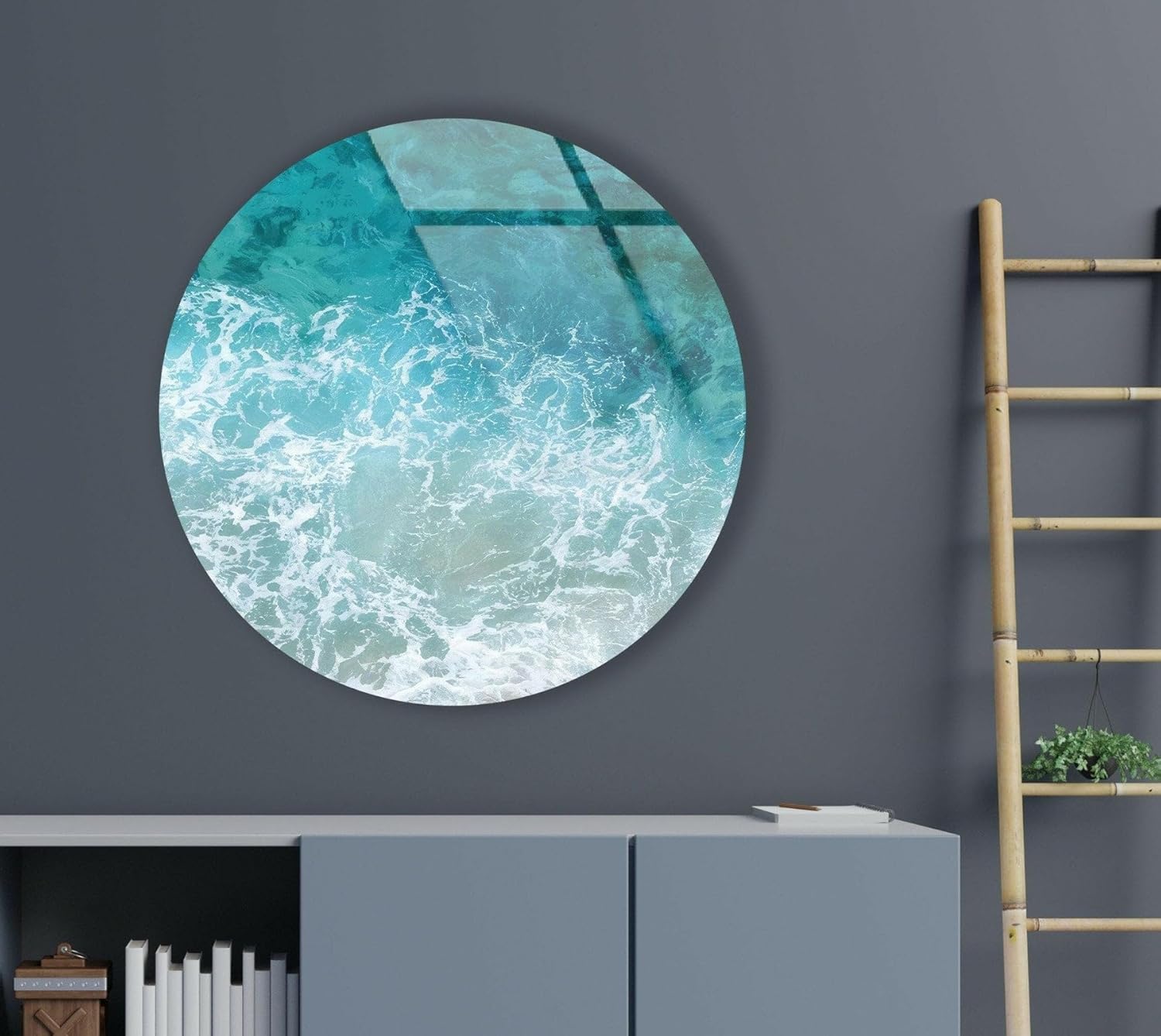 My Photostation.com 24''(60cm) Diameter Sea Waves Round Glass Wall Art Tempered Glass Printing Wall Decor Large Wall Art Wall Hangings