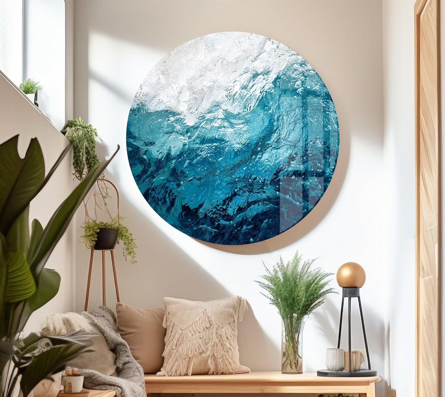 My Photostation.com 35.5Wx30H'' Blue Waves Abstract Glass Wall ArtTempered Glass Printing Wall Decor Large Wall Art Wall Hangings