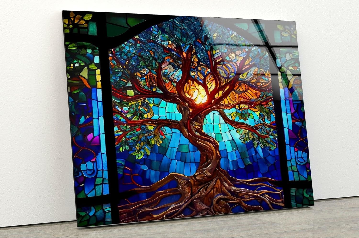 My Photostation.com Round 31,5'' Stained Blue Life of Tree Glass Wall ArtTempered Glass Printing Wall Decor Large Wall Art Wall Hangings