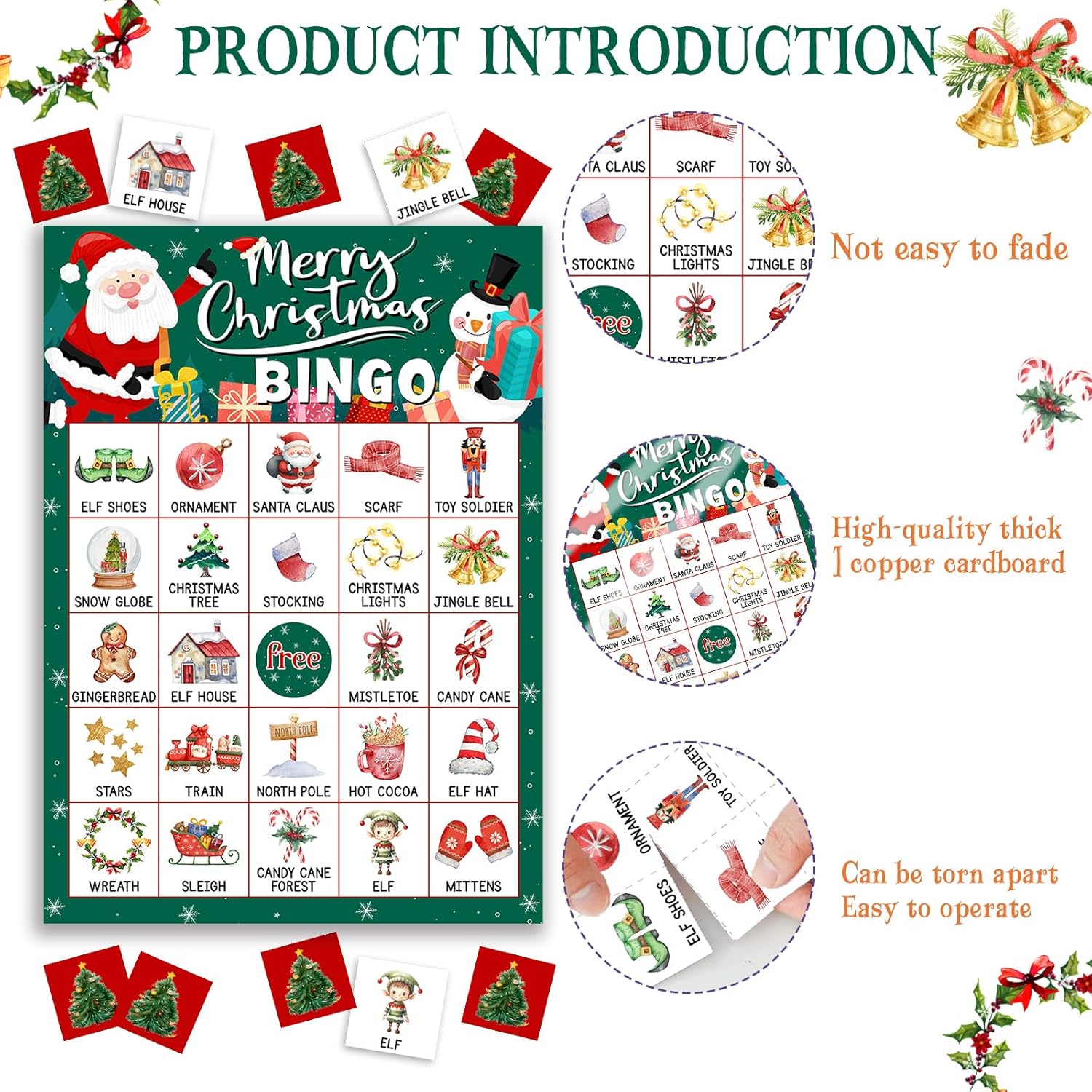 - 【Unique Christmas Designs】 Enjoy exclusive holiday-themed patterns like Santa, snowmen, and festive trees on every bingo card. Easy to cut along dotted lines for merry setup in minutes!