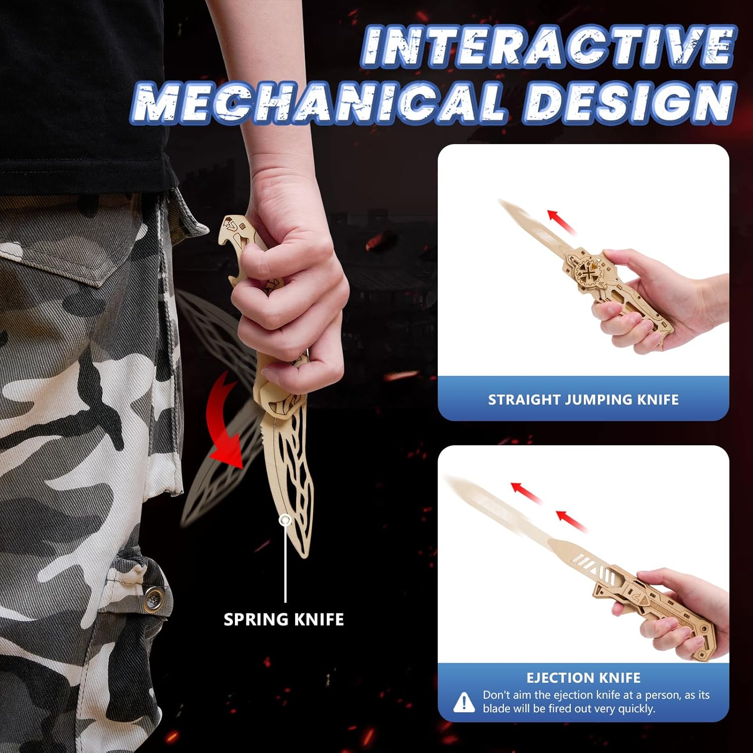 - Realistic & Interactive Designs:This 3-in-1 Uplike 3D Wooden Puzzle Knife Set features realistic, highly detailed knife models, including ejector knives, spring knives and straight jump knives. Each knife consists of over 40 wooden pieces. Once assembled, includes a button mechanism that triggers engaging mechanical movements. This fun DIY brain teaser puzzle toy offers a hands-on building experience while demonstrating distinct mechanical principles and craftsmanship.